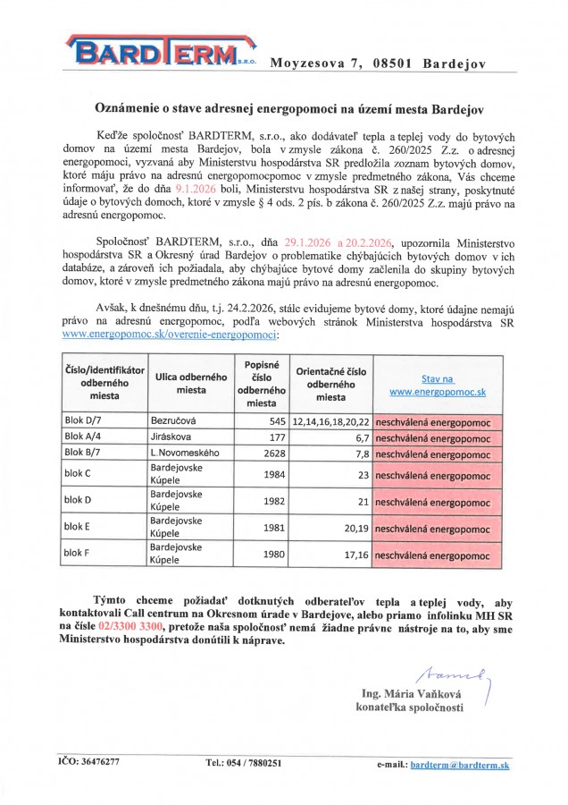 Oznámenie o stave adresnej energopomoci