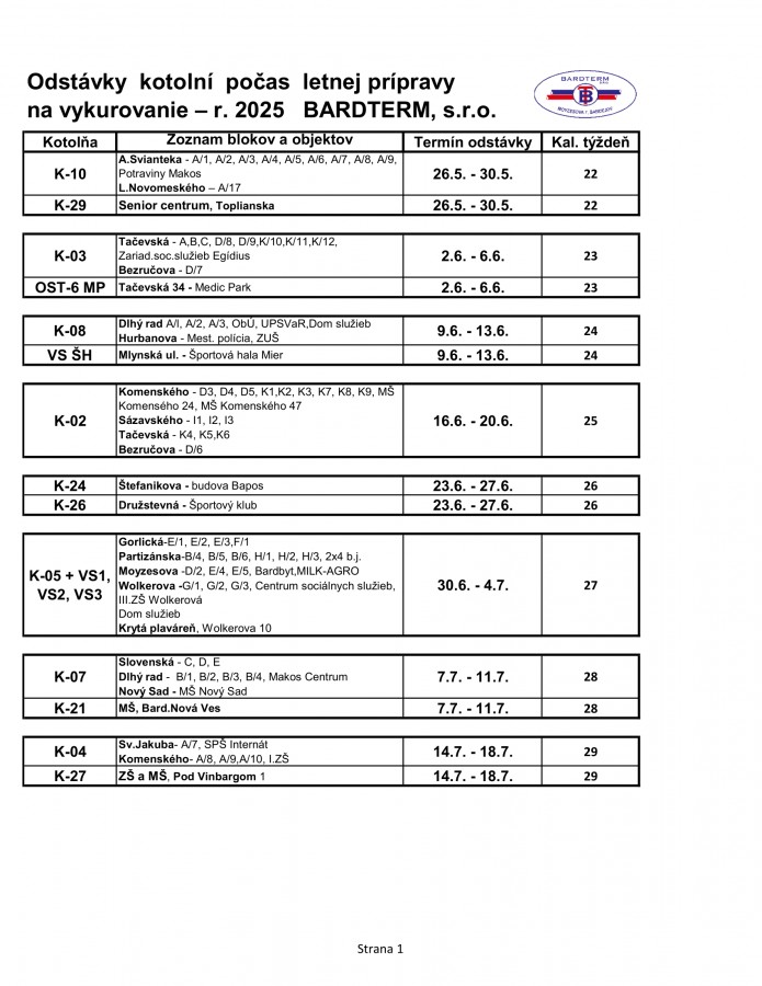 Letné odstávky na kotolniach 2025
