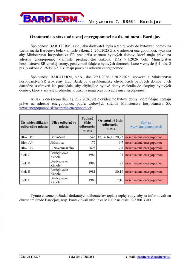 Oznámenie o stave adresnej energopomoci
